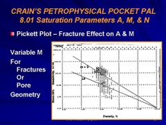 water saturation (Sw), where Sw = (1 / I) ^ (1 / N). This plot has been called the Pickett plot and