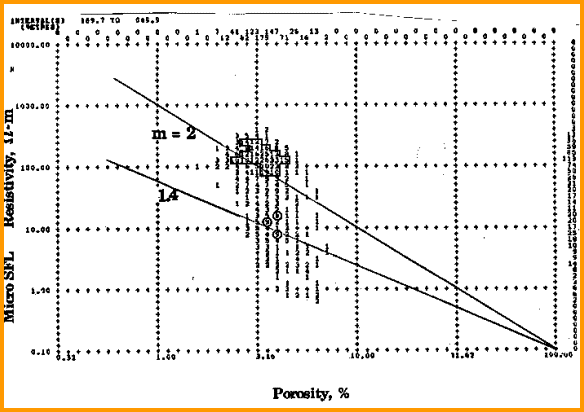1: log(RESD) = - M * log(PHIe) + log(A*RW@FT)