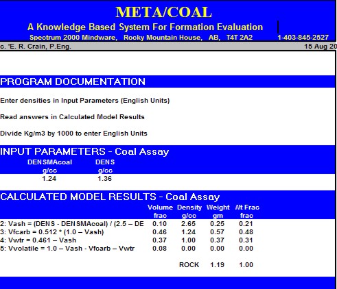 SPR-14 META/LOG COAL BED METHANE (CBM) CALCULATOR