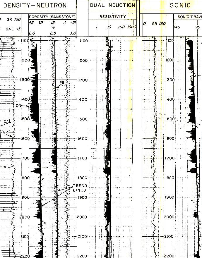 Example of trend lines in a slightly over-pressured shale. Gas kicks