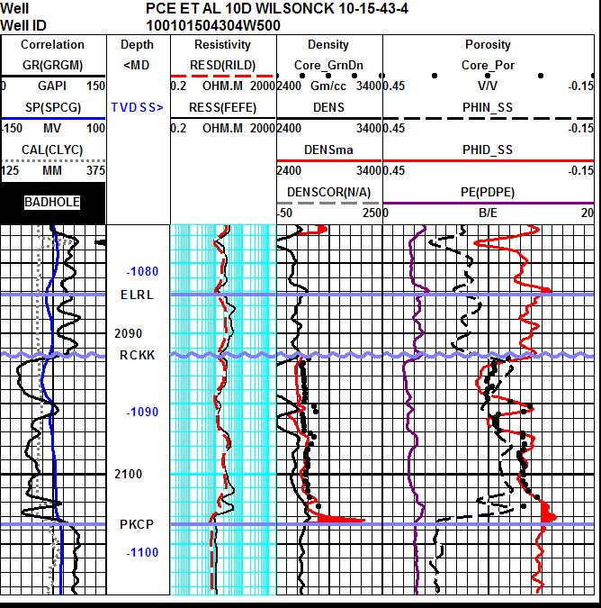 density, neutron, and PE logs from the log analysis answers using