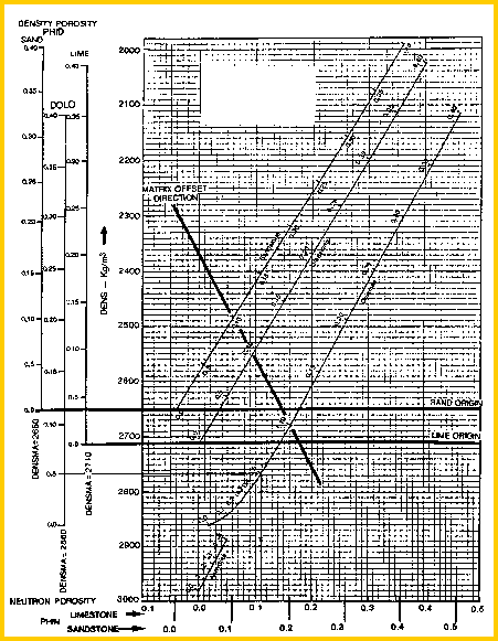 and the density log reading. Sxo is assumed to be 1.0. The matrix