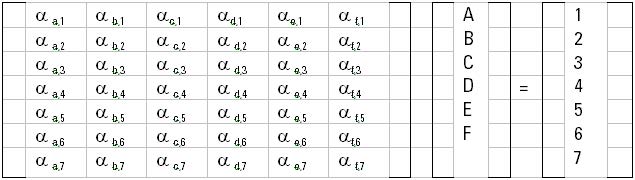 A, B, C, D, E, and F = minerals and fluid Volumes to be evaluated