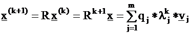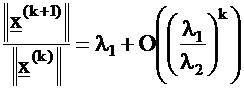 It means that starting with an (almost) arbitrary x vector, constructing the series of iterations by Eq. (17), the ratio of (18) converges to the largest eigenvalue, l1 , and x(k) converges to the corresponding eigenvector, v1 .