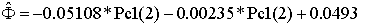 Multiple regression analysis of principal components with log and core data gives: