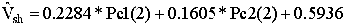 An attenuation factor is computed by the following formula to reduce the effect of shales: