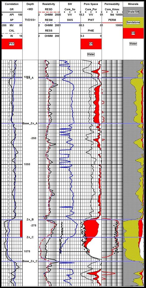 Bakken “Tight Oil” example showing core porosity (black dots), core