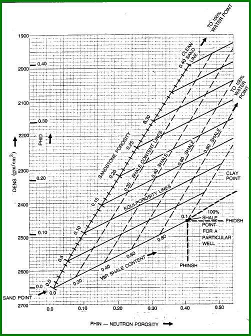lines on a density neutron crossplot is given below. This is the normal density neutron crossplot for determination