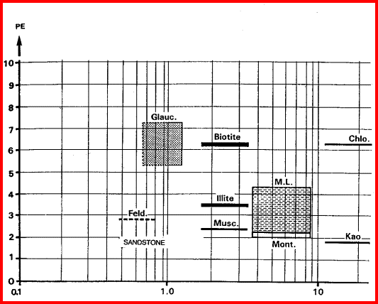PE vs Th/K Ratio Crossplot for Clay Typing. Thorium is
