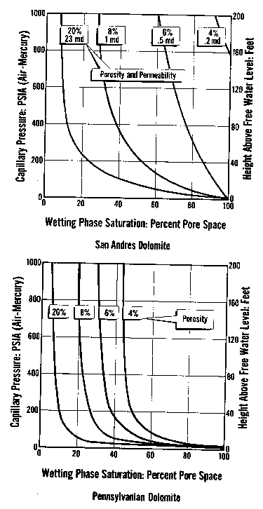 saturation can be calibrated by comparing calculated results to capillary pressure data from special