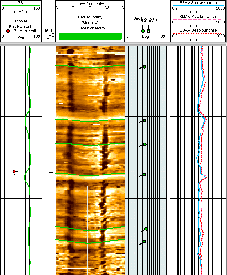 Micro-scanner images give a very good visual correlation to core and allow the interpretation of small and large scale sedimentary features in the formations. The identification of fractures, along with fracture orientation, and the ability to differentiate them from high angle bedding features is possible.