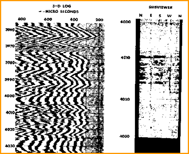 The acoustic image log (borehole televiewer) is similar in appearance to a resistivity image log (formation micro-scanner), but uses an ultrasonic derived, directionally oriented, 360 degree view of the borehole wall.