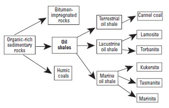 coal, alum shale, stellarite, albertite, kerosene shale,