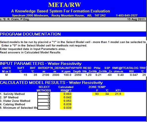 SPR-07 META/LOG WATER RESISTIVITY (RW) CALCULATOR