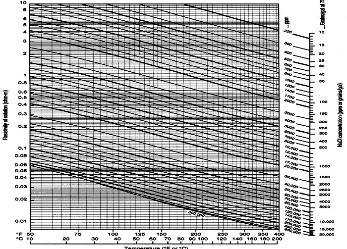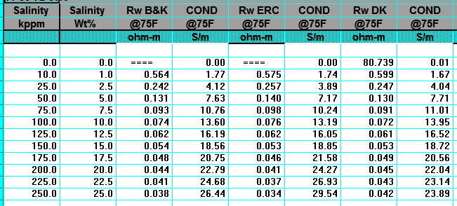 relative density, and resistivity (Rw) of the water sample. The Rw