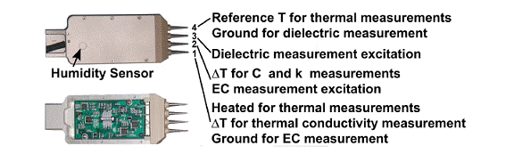 The TECP is adapted from the commercial KD-2 multi-purpose probe made by Decagon Devices. The four-pin probe determines electrical conductivity by a two-pin LC (dielectric constant) approach and a redundant four-pin van der Pauw technique. The 4 pin EC method is similar to the Schlumberger four electrode AMNB surface resistivity electrode arrangement from the early 1900's.