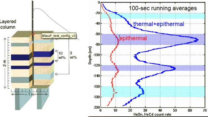 The borehole inspection system (BHIS) runs the neutron probe, a panoramic microscopic imager, and spectrometer. The borehole neutron log (BneuP) measures both thermal and epithermal neutron count rates. A surface version of the tool, to be carried on a Mars rover, is called (you guessed it) SneuP. It is intended as a dowsing machine, looking for hidden near surface water or ice deposits.