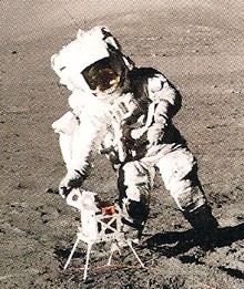 Harrison "Jack" Schmidt deploying the Surface Electrical Properties equipment (SEP) during Apollo 17 mission, 1972.