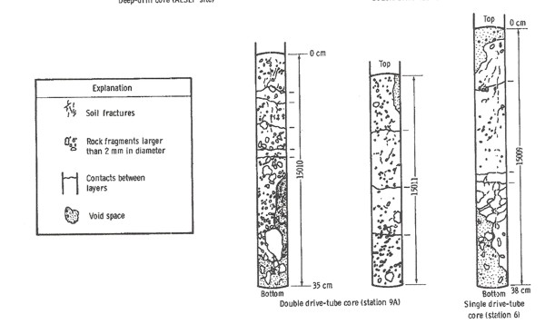 in length. Both driven and drilled cores were taken in the lunar soil.