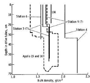 Shallow cores were taken during Apollo 15, 16, and 17 missions. Rocks were also analyzed in-situ with X-Ray fluorescence and photography. Samples of rocks were returned to Earth and subjected to myriad tests, much as we have done for many years on Earth in the oil and mineral business. Sample lunar cores are illustrated below.