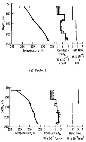 Apollo 17 temperature log, adjusted for diurnal variations, with derived thermal conductivity log.