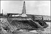 derricks, storage tanks, and flaring of "waste" gas,1914 - 1918 era ==> .