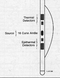 The first commercial neutron logs were run in 1945 by Lane Wells. They are based on particle physics concepts. Neutron logs emit fast neutrons from a source at the bottom of the tool. The effect of interactions with the rocks and fluids on the neutron flux is measured by detectors above the source on the logging tool. Hydrogen has by far the largest impact, so the tool can be calibrated to represent hydrogen index, which is highly correlated with porosity. So neutron logs are considered to be porosity indicating tools. There are three basic neutron logging instruments