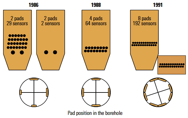of the 4 pads of the SHDT dipmeter), the four pad FMI (which could