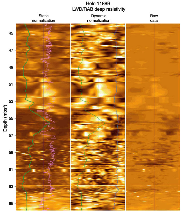Resistivity at Bit (RAB). As for all image logs, black represents