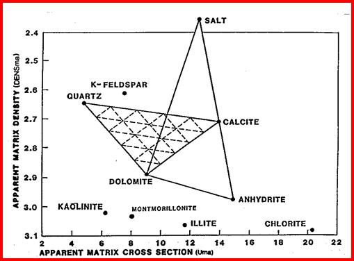 Many other two and three mineral models can be made using combinations of sonic, density, neutron, PE and spectral gamma ray log curves, such as potassium or thorium or potassium/thorium ratio. Typical crossplots are shown on the following page.