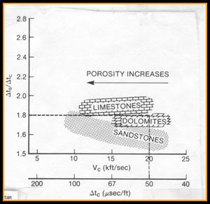 Where DTC = compressional travel time (usec/ft or usec/m) DTS = shear travel time (usec/ft or usec/m) Vp/Vs = velocity ratio (unitless)