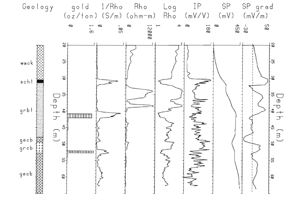 Comparison of Gold Assay, track 1 with IP response, track 5.