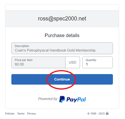 Confirm your details then click the "Return to Merchant" button to continue using Crain's Petrophysical Handbook. Thank-you for your purchase!