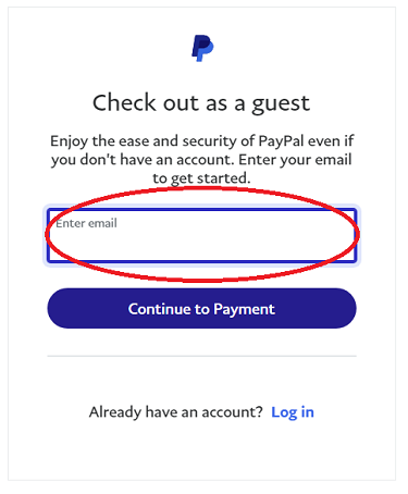 If you do not have a PayPal Account then you can choose to Check out as a Guest by following the instructions below.