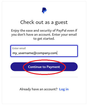 Click the "Continue to Payment" button to continue to Check out as a guest.
