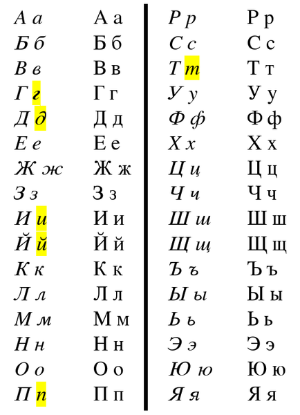 names, Roman alphabet equivalent, and the numeric value assigned to each
