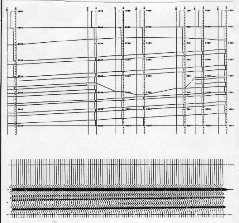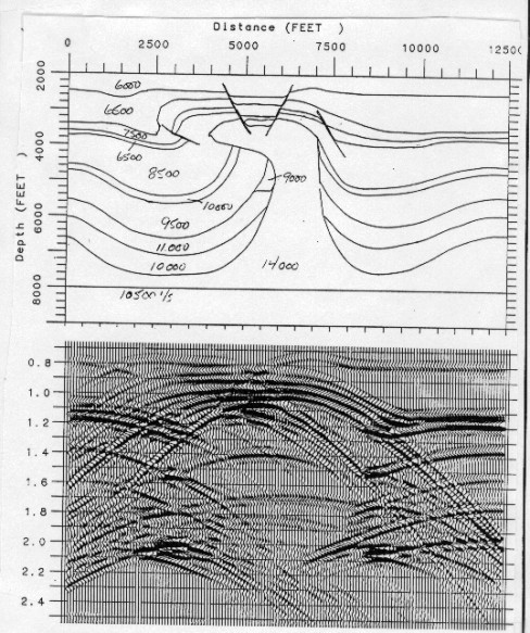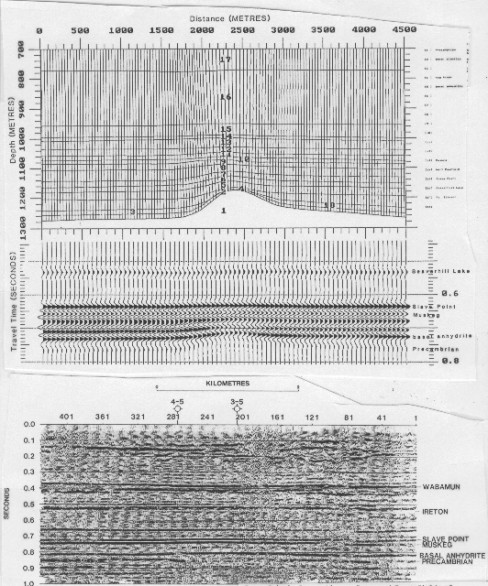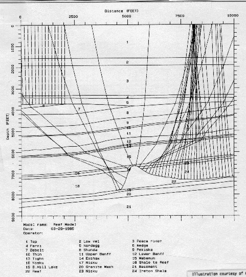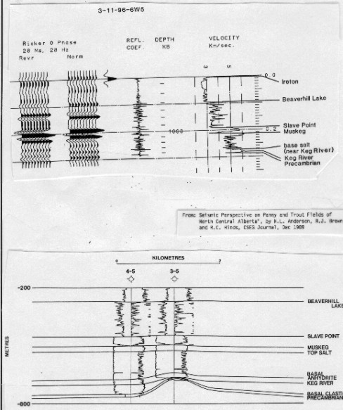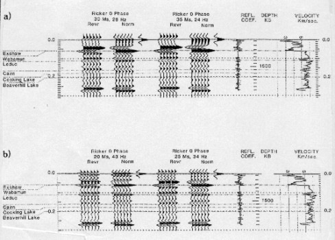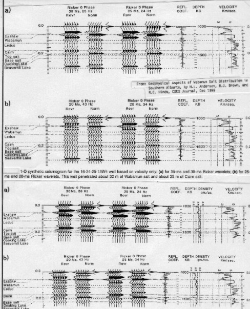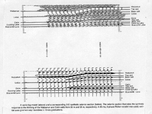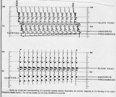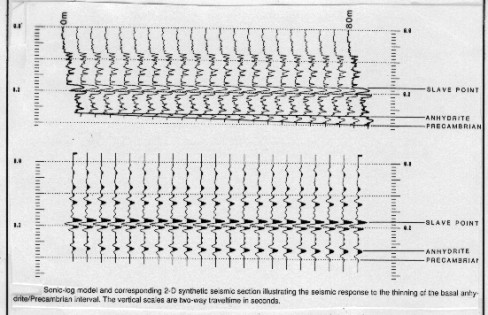 R.J.Brown, and R.C.Hinds, CSEG Journal, Dec 1989. This example show sonic log models for a thinning lower anhydrite
