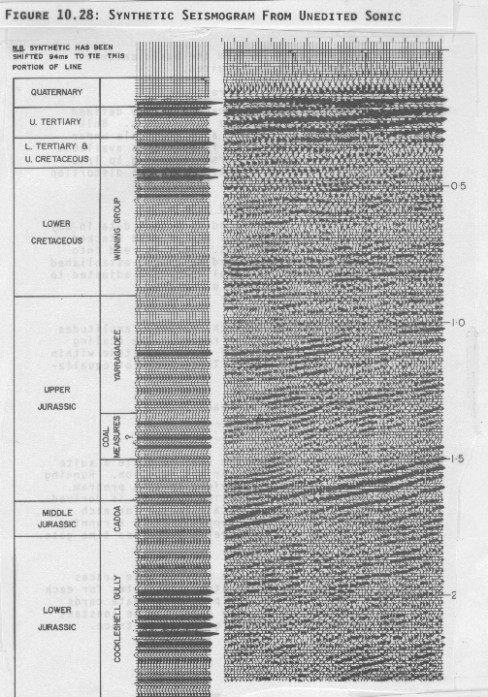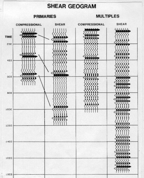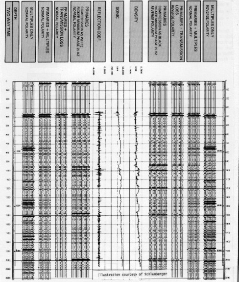 Synthetics and seismic models can also include multiple reflections or shear wave models from shear wave sonic logs. Normal moveout is rarely modeled on a synthetic, but it might be useful to identify reflectors on raw seismic records.