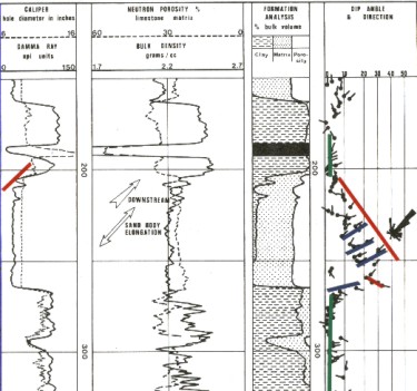 Silt is generally deposited in abandoned channels, giving rise to obvious dipmeter channel patterns which are, unfortunately, not very good reservoirs. The shale content indicators show this without difficulty.