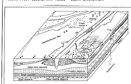 Sedimentary model in delta environment