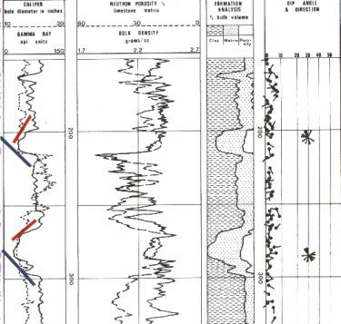 Additional hints on interpretation techniques are listed in below, taken from Ed Bigelow's masterful paper "Making More Intelligent Use of Dipmeter Data", The Log Analyst, Jan 1985. Examples and quality control methods are also covered in that paper, which is highly recommended reading.