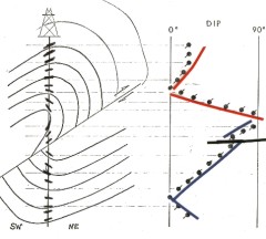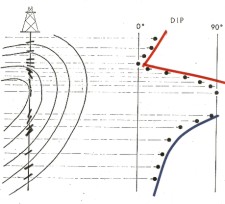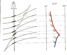 on the well bore at an angle representing the actual dip shown