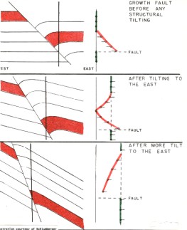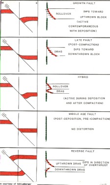 faults, contemporaneous with deposition, usually show rollover,